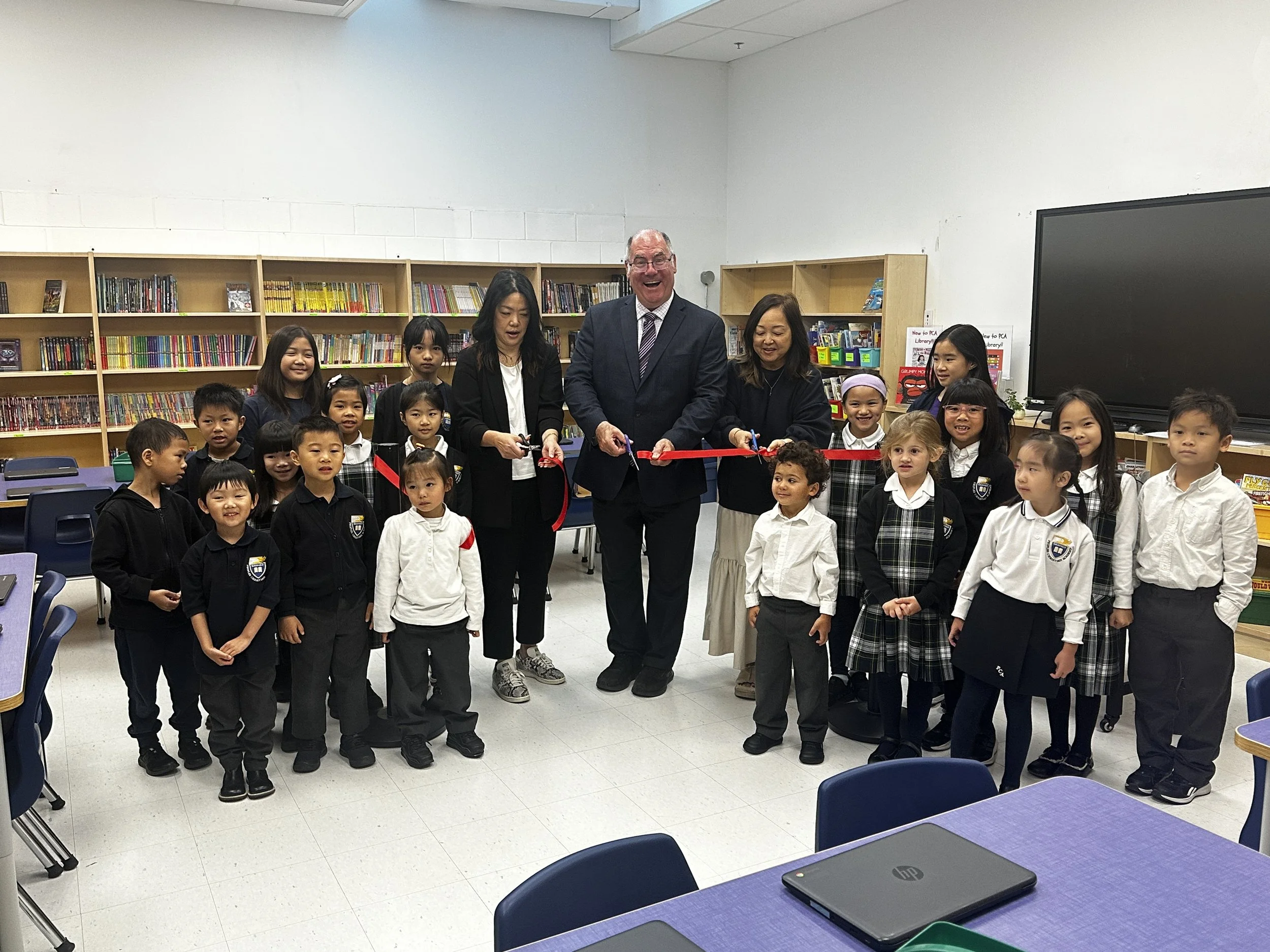 One of the things that tops the list of what a school needs to thrive is a (soon-to-be) fully-stocked library/resource centre! What a beautiful addition to our growing facility as we continue to build the foundations for our students’ learning! This new room is the result of our generous families contributing to our yearly Walkathon fundraiser. We are so grateful to finally have this vision realized, as do the many children who will spend hours perusing the growing collection of books! We also thank Mrs. Jin Lee for her resource-fullness in teaching our students about technology and leading activities that expand their imaginations!